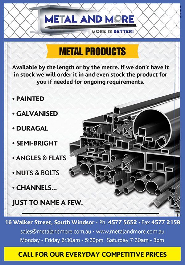 No matter your building project or metal product needs, the experienced staff at Metal and More can help make your project a success. Call us today to discuss your needs and receive a quote on your project.