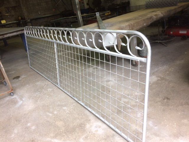 We can create horse stable gates and cattle gates with horizontal pipe railing with metal infill sections. We can manufacture exactly to your design!